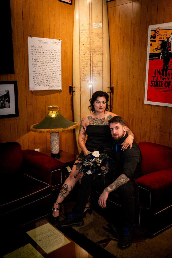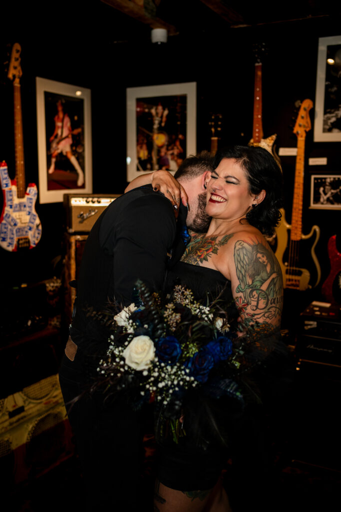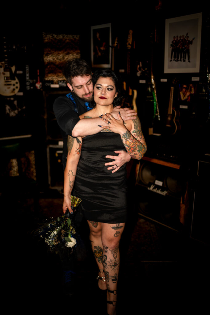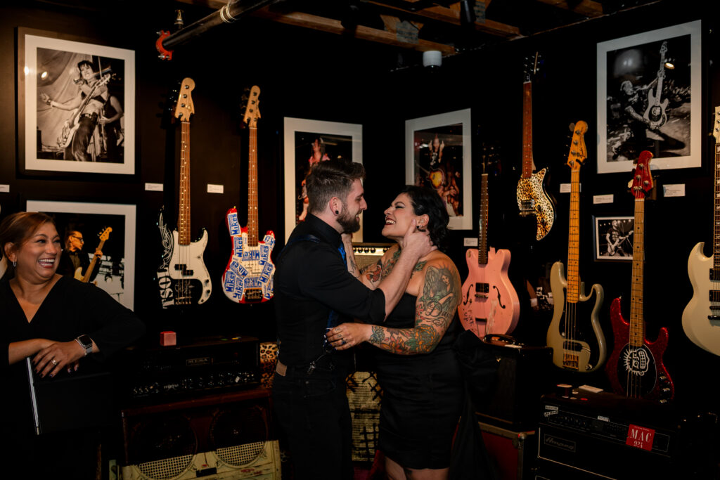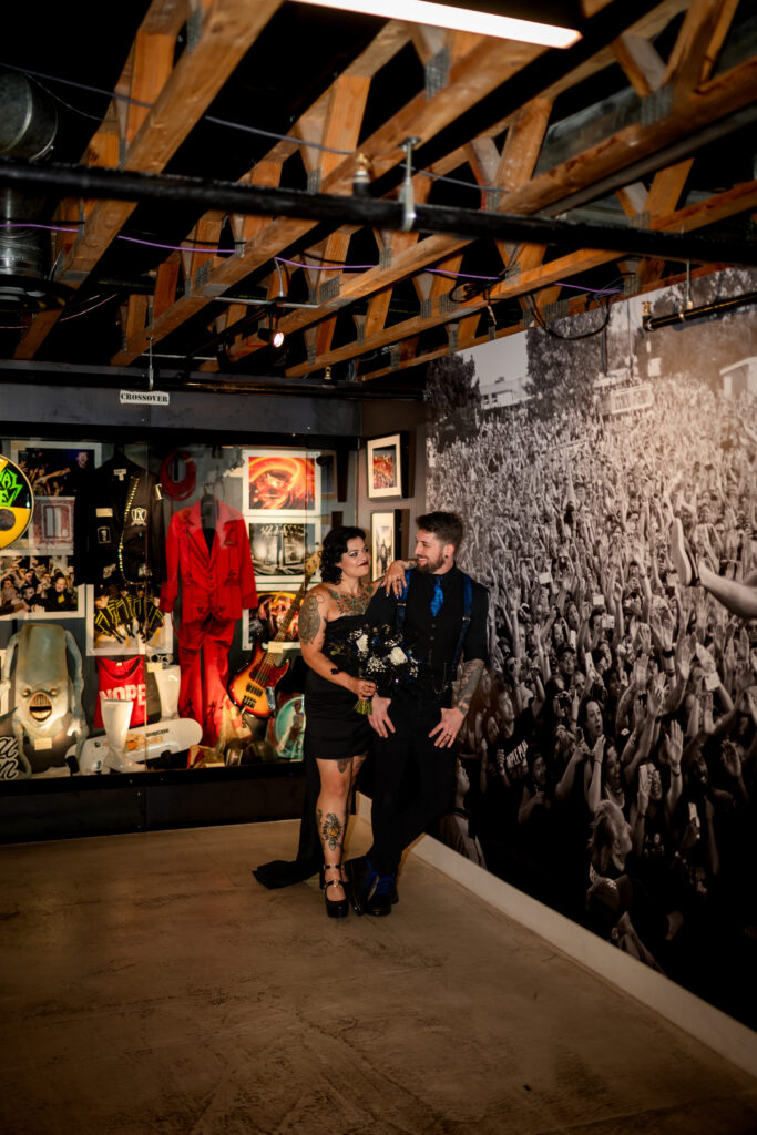 From that moment on, everything clicked. Their elopement became less about expectations and more about identity. Also about stripping away the noise and focusing on what mattered most. Inside the Punk Rock Museum, surrounded by decades of rebellion, creativity, and soul, Nichole and Scott said their vows. The space was gritty and nostalgic, layered with history and heart – the perfect backdrop for a couple who refuses to follow the rules.