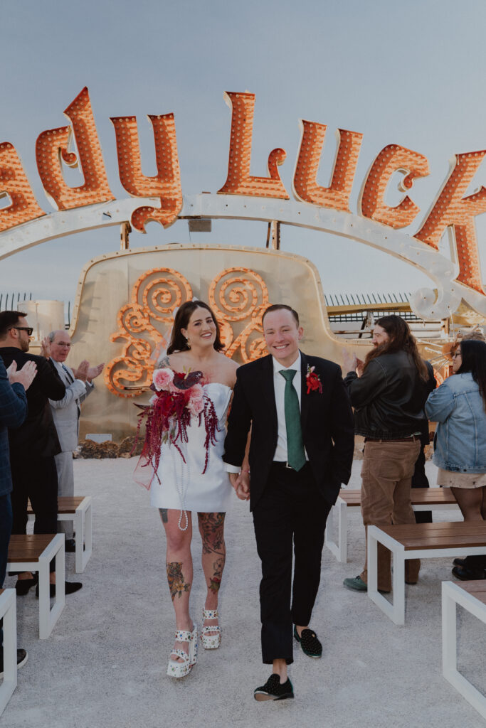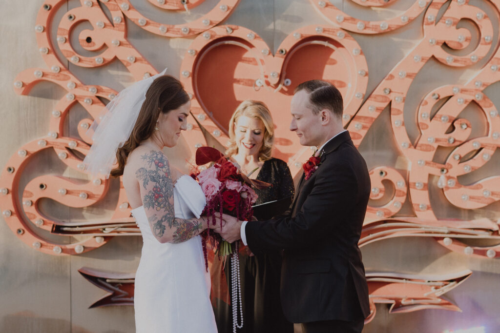 From there, everyone made their way to one of the most iconic and visually striking locations in the city: The Neon Museum. Among vintage Las Vegas signs and glowing pieces of the city’s history, Patrick and Erica exchanged their vows in an intimate ceremony that perfectly blended romance with the vibrant spirit of Vegas.